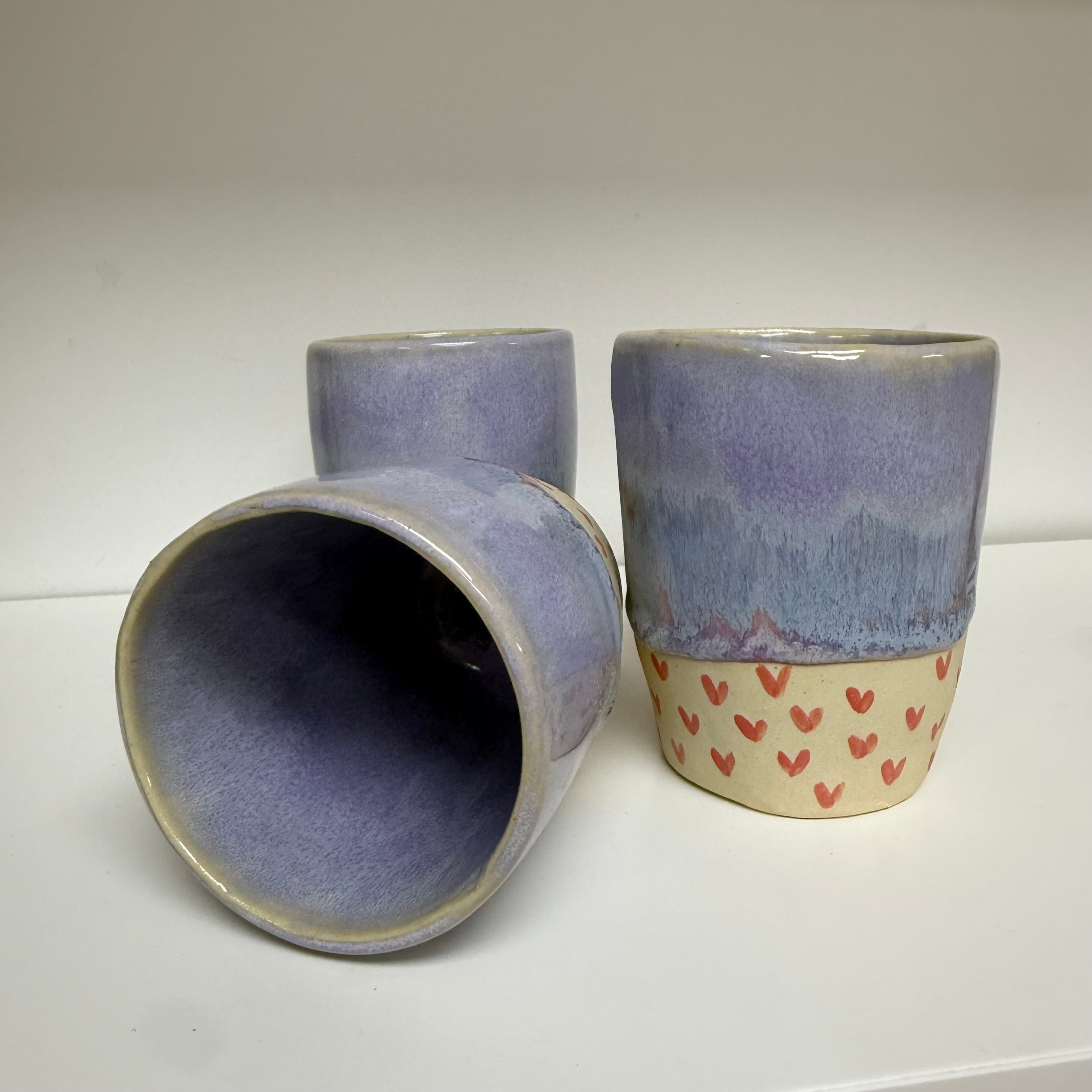 Handmade Lavender Dream with Pink Hearts Keep Cup