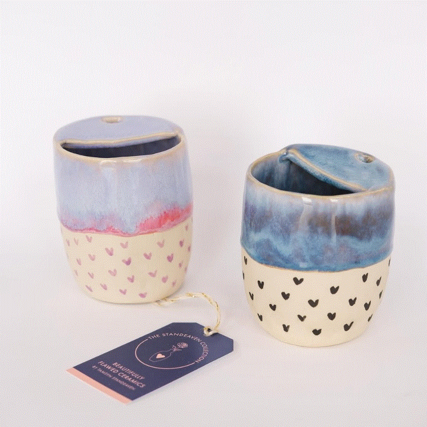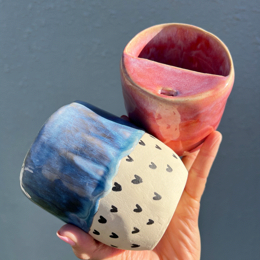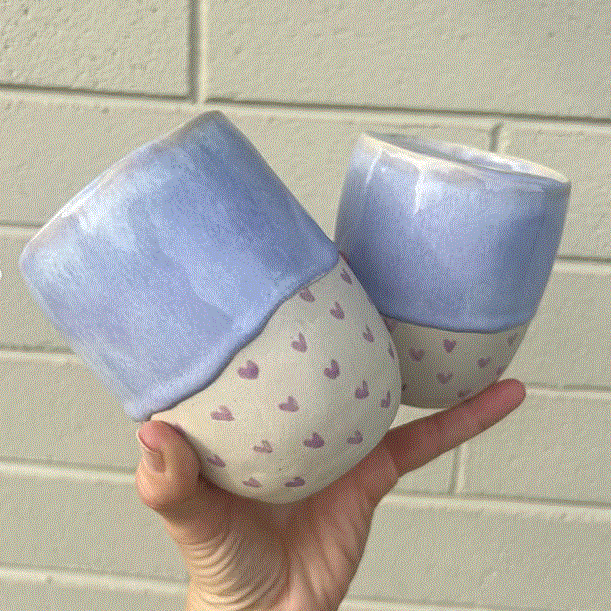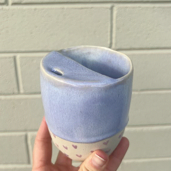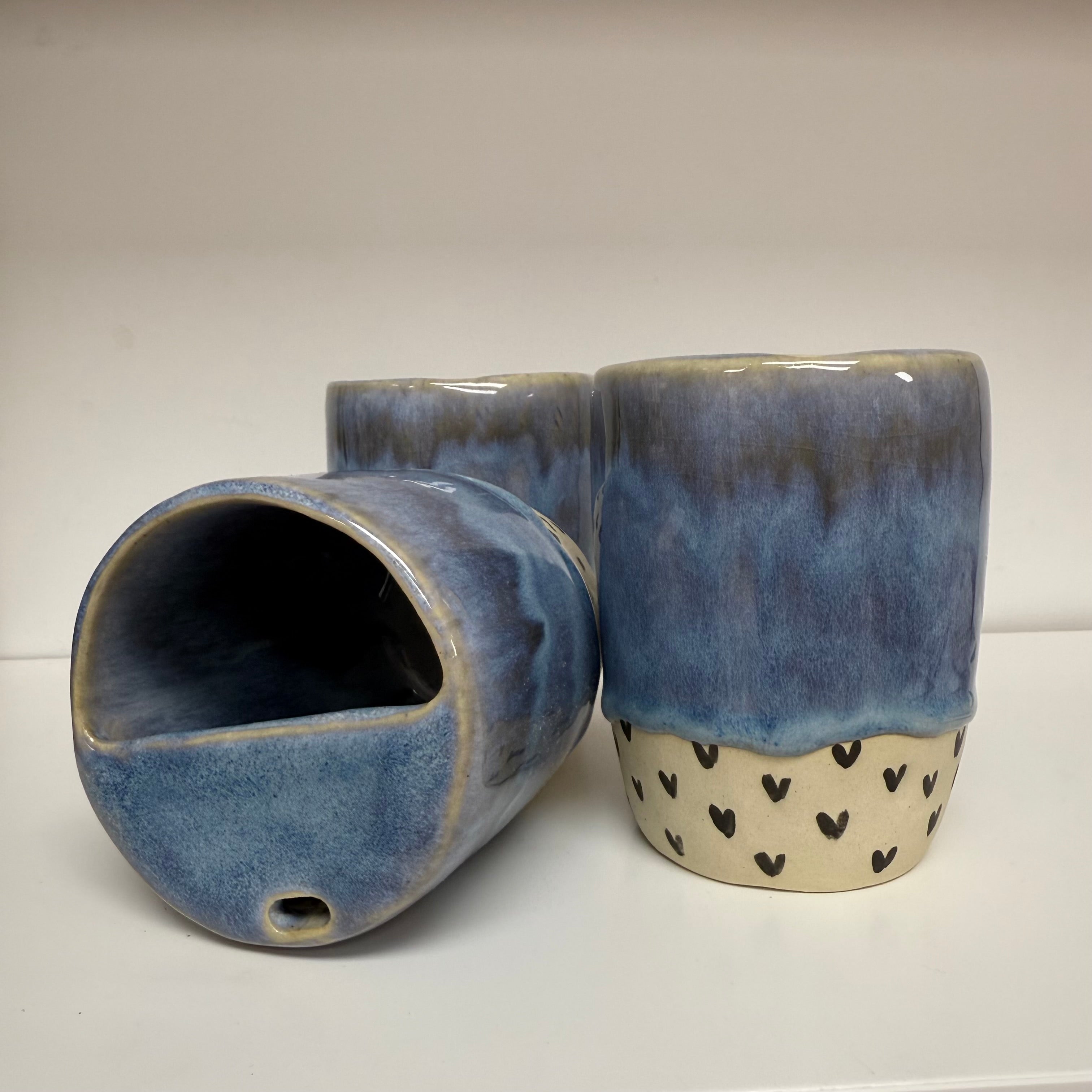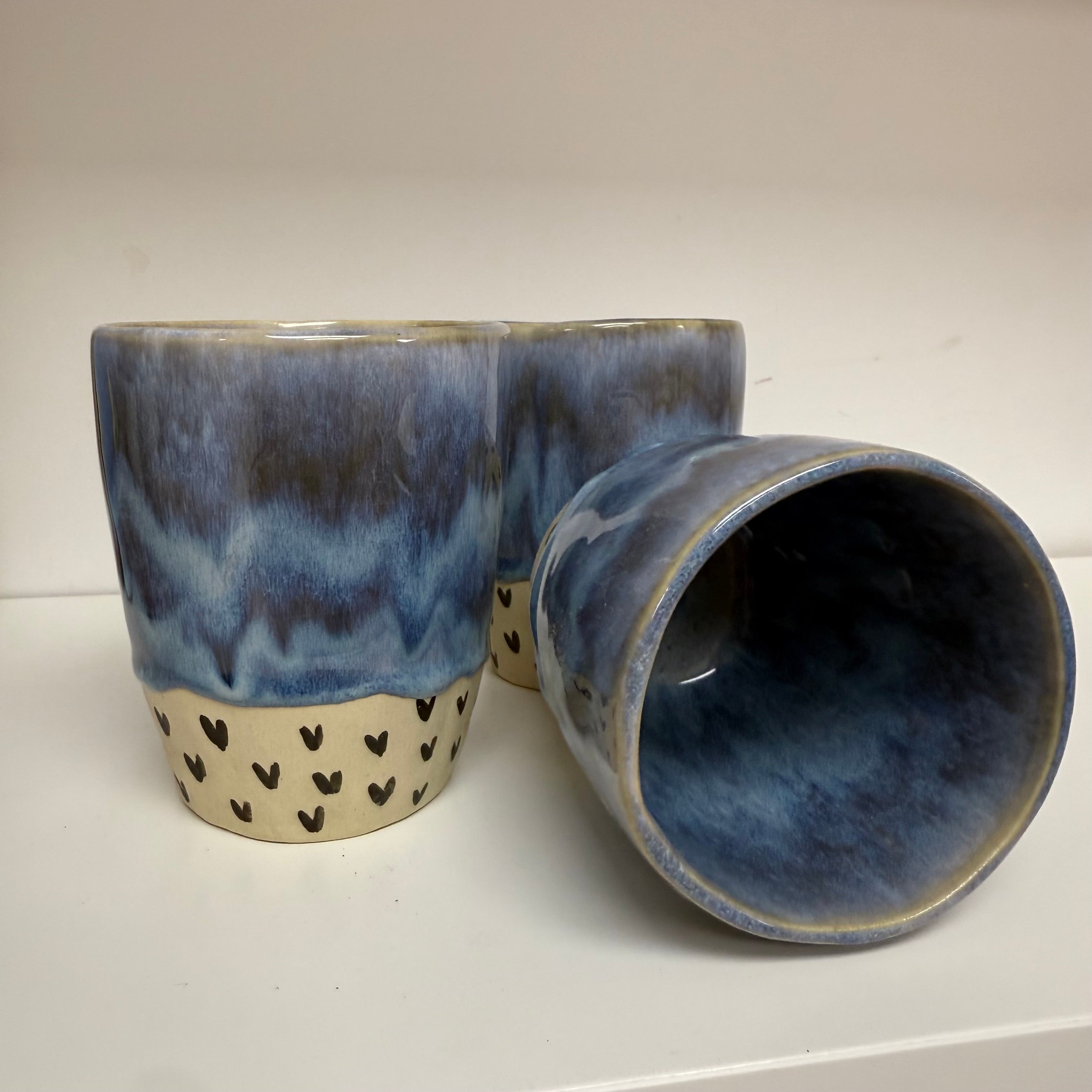 Handmade Blue Drippy with Black Hearts Keep Cup