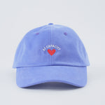 100% cotton, bright lavender (bluey purple tone) with white & red embroideryOSFM (approx. 58cm diameter), standard woman's sizingUnstructured dad capMetal clasp adjustable back.