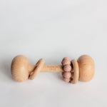 Crafted from eco-friendly beechwood and food grade silicone, this toy helps to develop eye-hand coordination and fine motor skills, and its easy-to-grasp design and soft rattle sound also provide sensory stimulation. Its silicone material is soft on sore gums, while beechwood is naturally anti-bacterial, offering a safe and natural solution for playtime. To clean, simply wipe with a damp cloth.