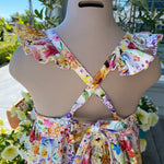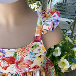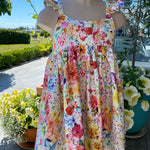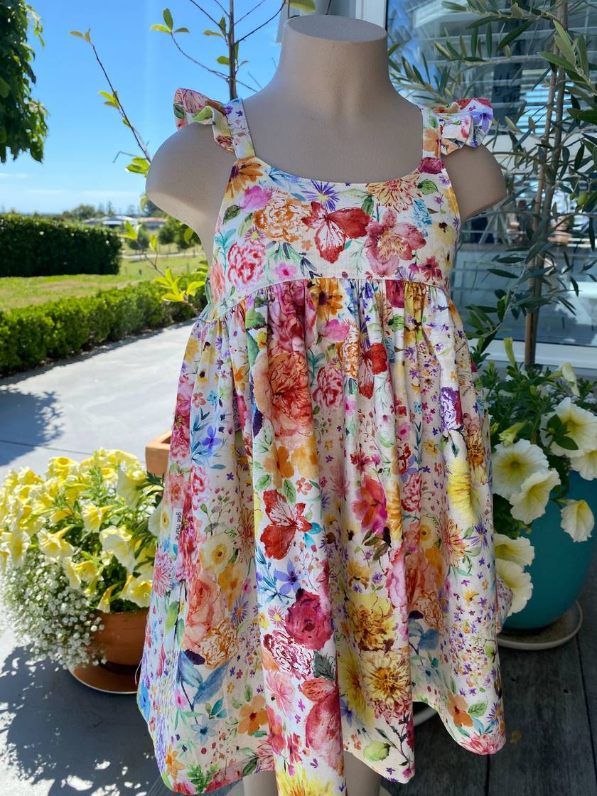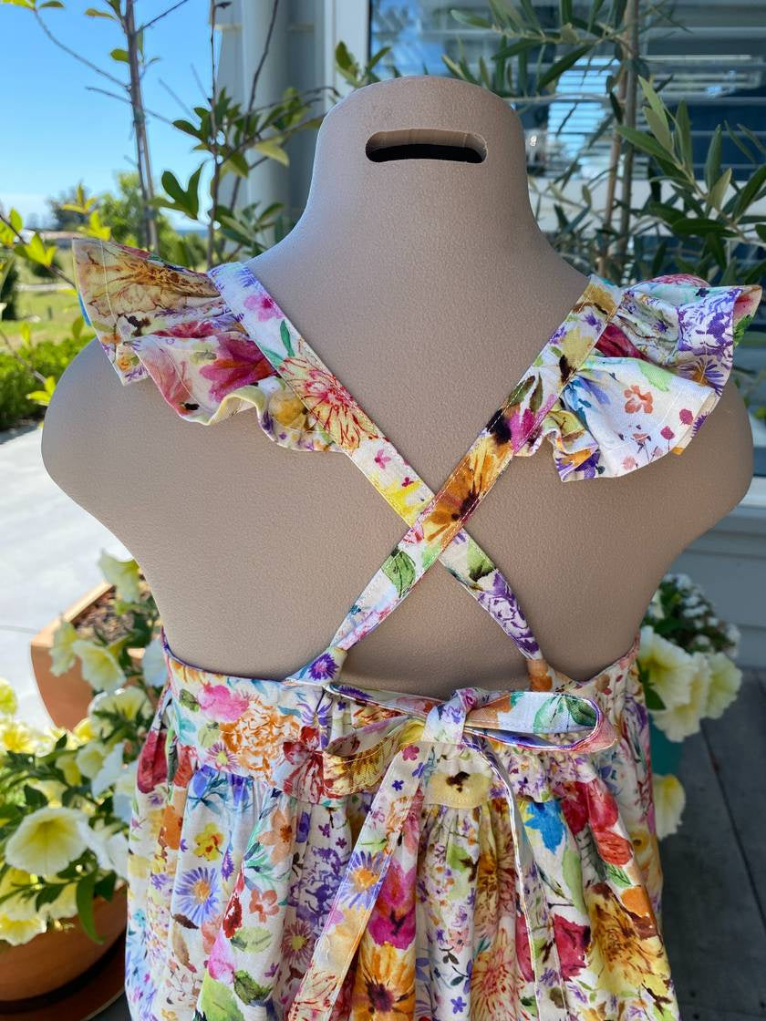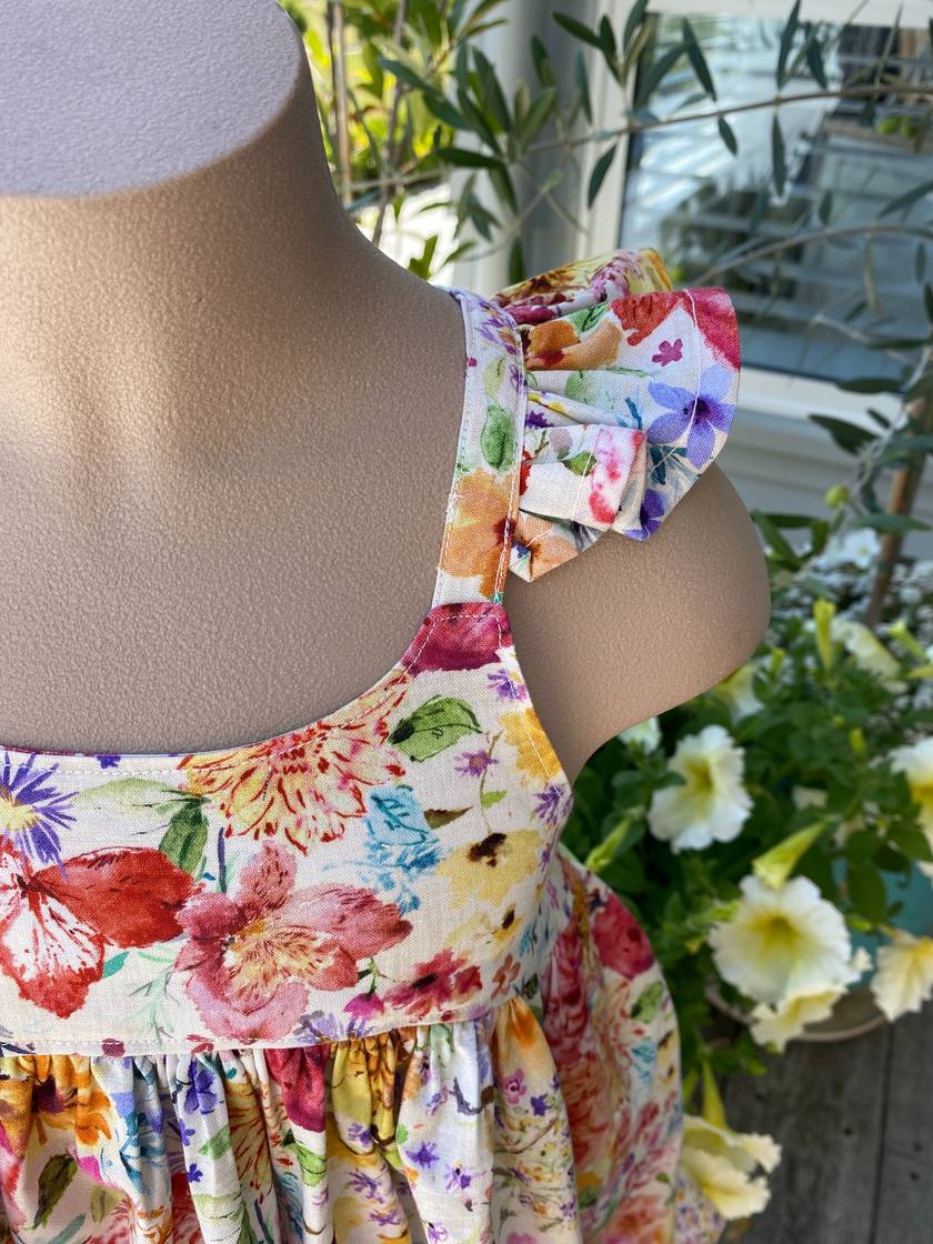 This stunning little girls sundress is made with our floral woven cotton fabric.