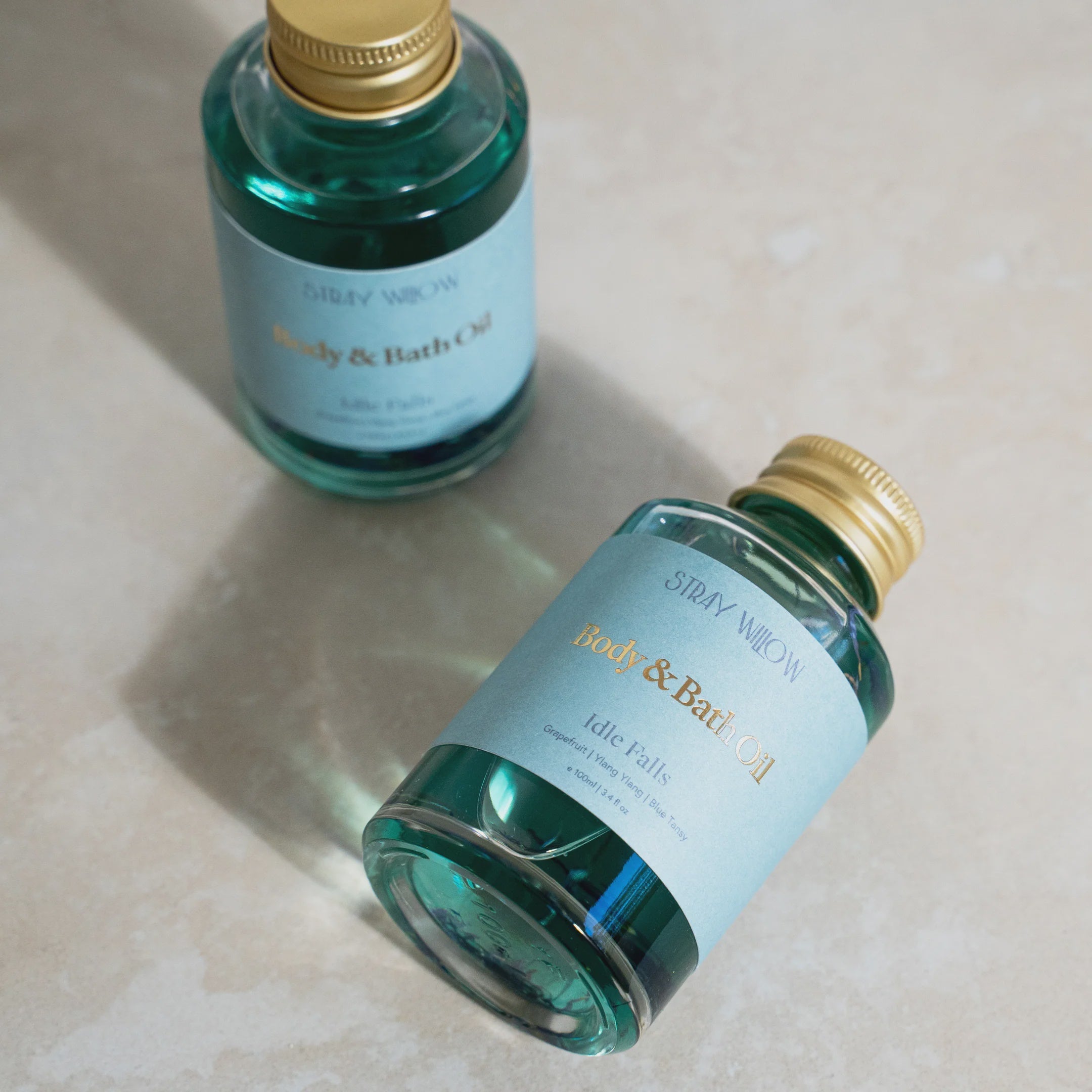 Our Idle Falls Body & Bath Oil is here to help you indulge in daily self care rituals, providing nourishment to your skin, hair and nails. A lightweight oil infused with vitamins and essential fatty acids to improve skins appearance while encapsulating your senses with a dreamy blend of essential oils.