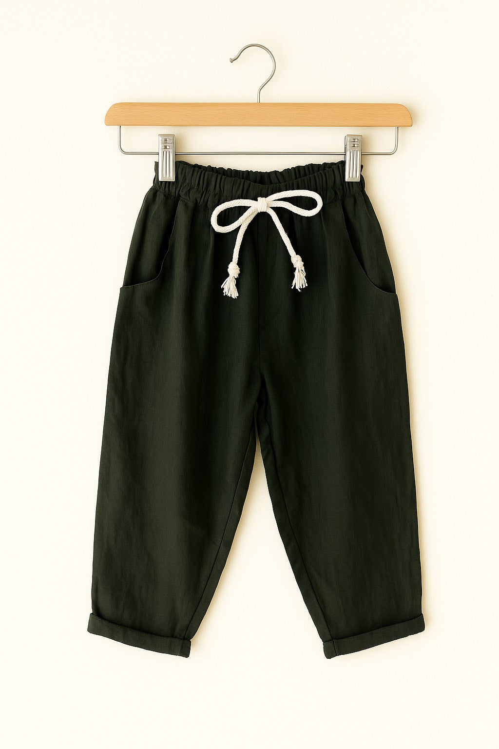 Designed with a loose, relaxed fit and deep side pockets (perfect for collecting treasures), they offer all-day comfort with a laid-back, timeless style.