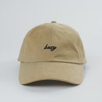 100% soft cotton, beige with black embroideryOSFM (approx. 58cm diameter), unisex sizeUnstructured dad capMetal clasp adjustable back.