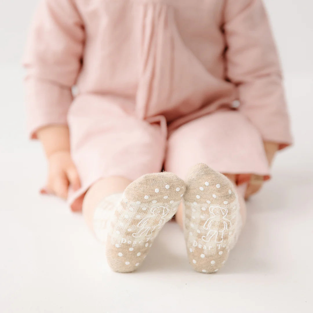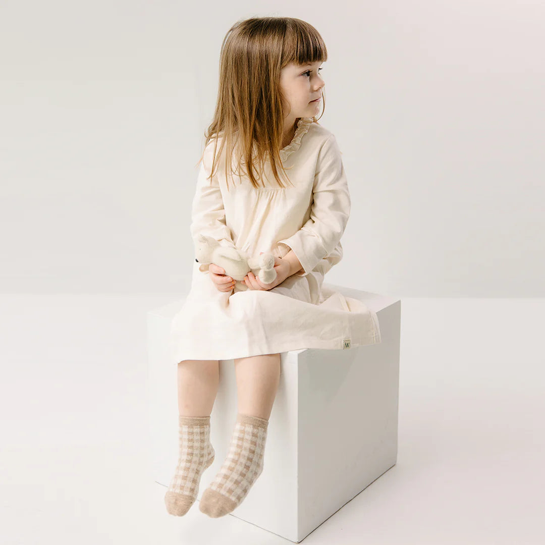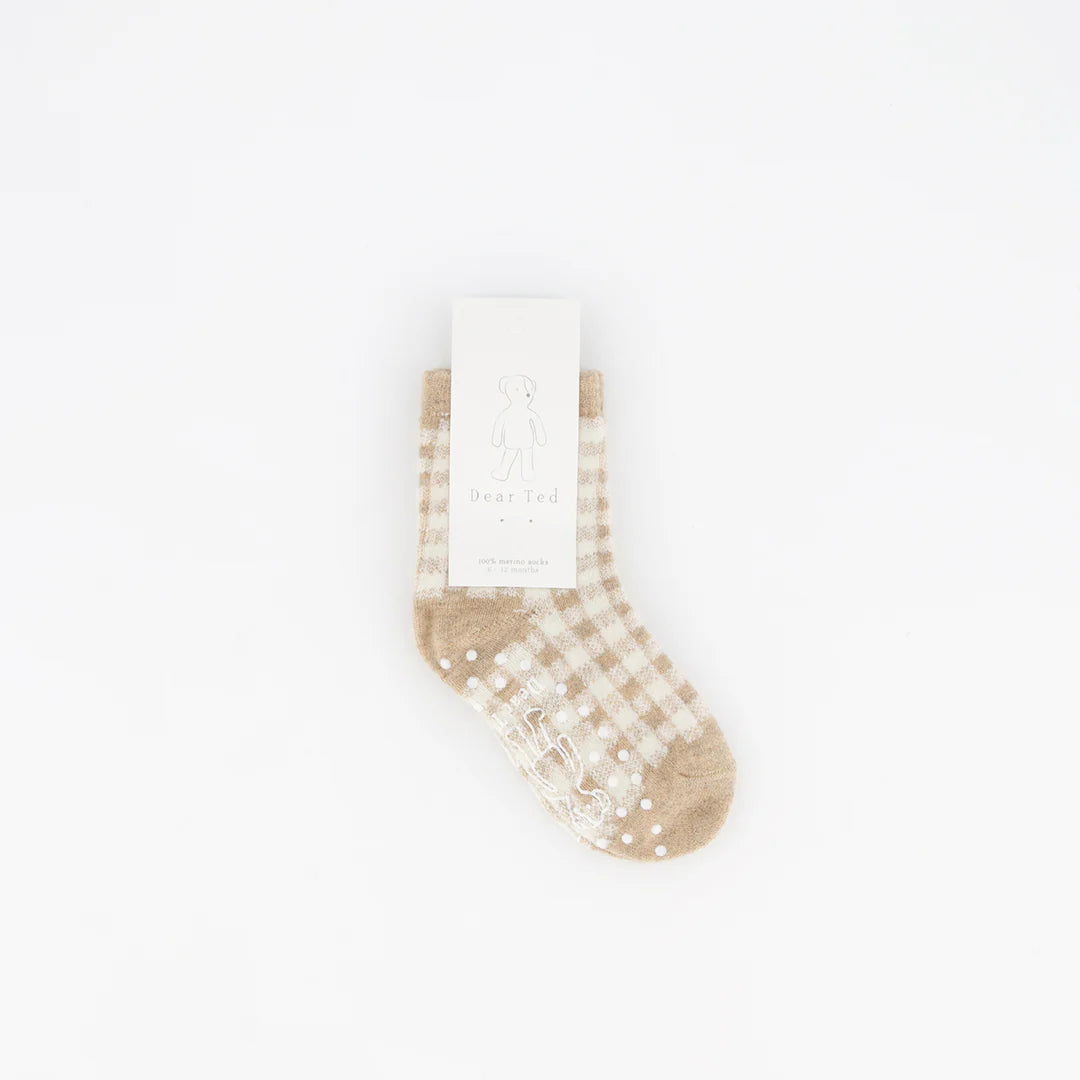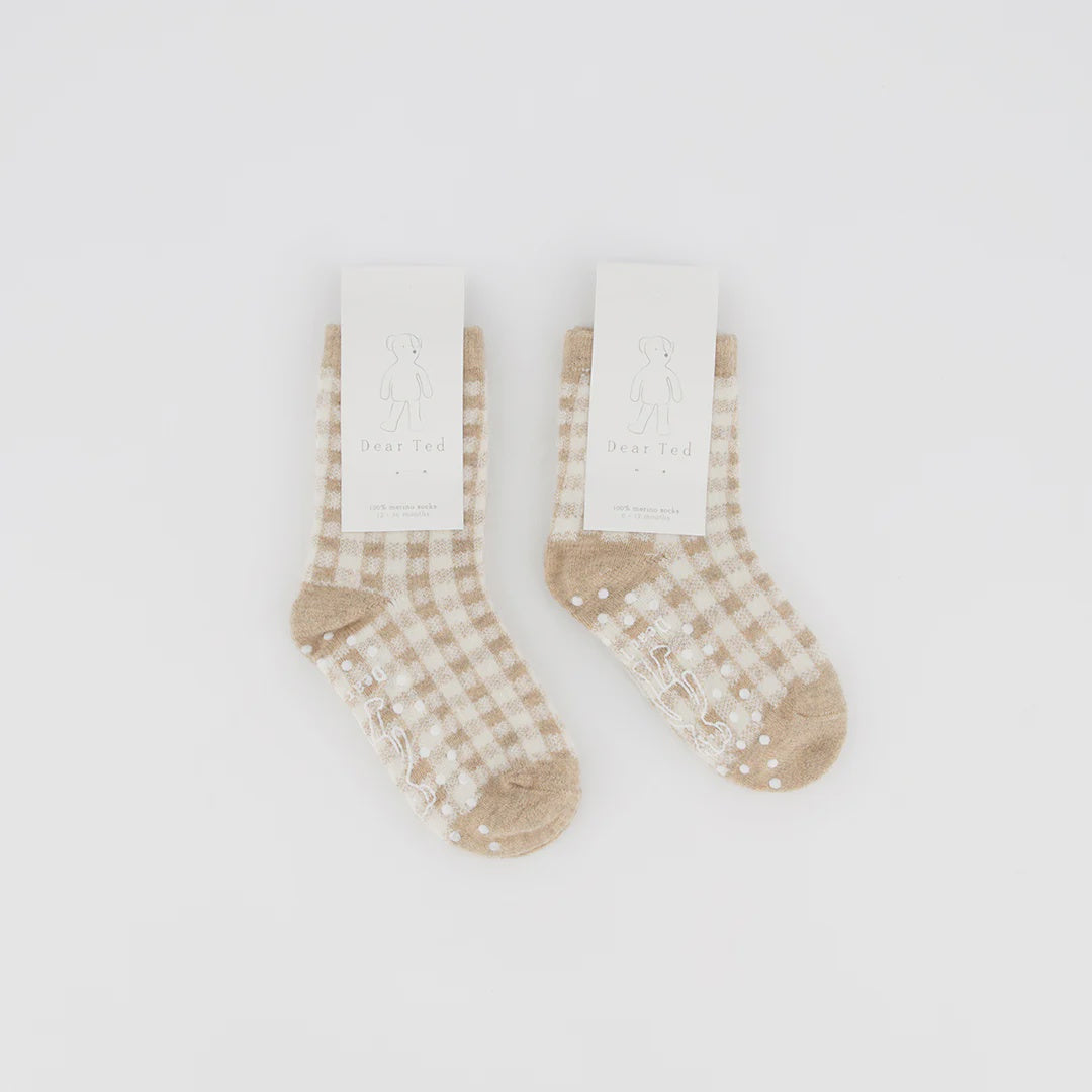NEWBORN NATURAL - Pearl - Natural with a zigzag texture crew length merino socks