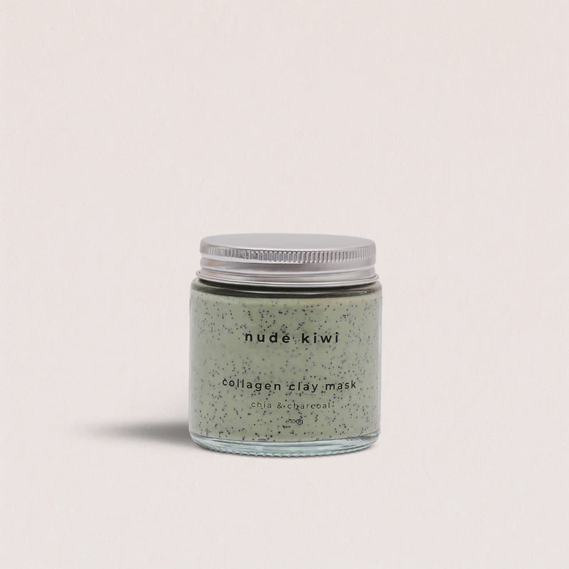 A clarifying clay mask that detoxifies without stripping. Formulated with green clay, activated charcoal, chia seed oil, and marine collagen to draw out congestion, refine pores, and firm the skin. Leaves skin feeling clean, calm, and rebalanced.
