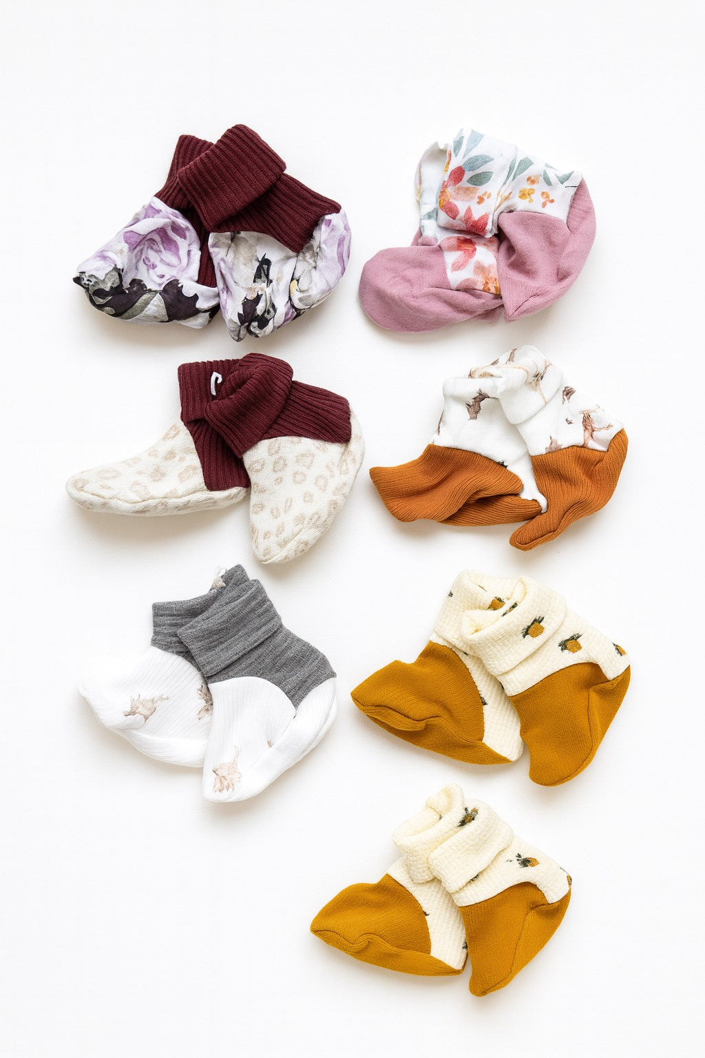 Inspired by the countless moments of watching littles explore the world in their first kicks and first steps. Crafted with love and an eye for both style and practicality, these booties are more than just footwear; they’re a cosy embrace for your baby’s tiny toes.