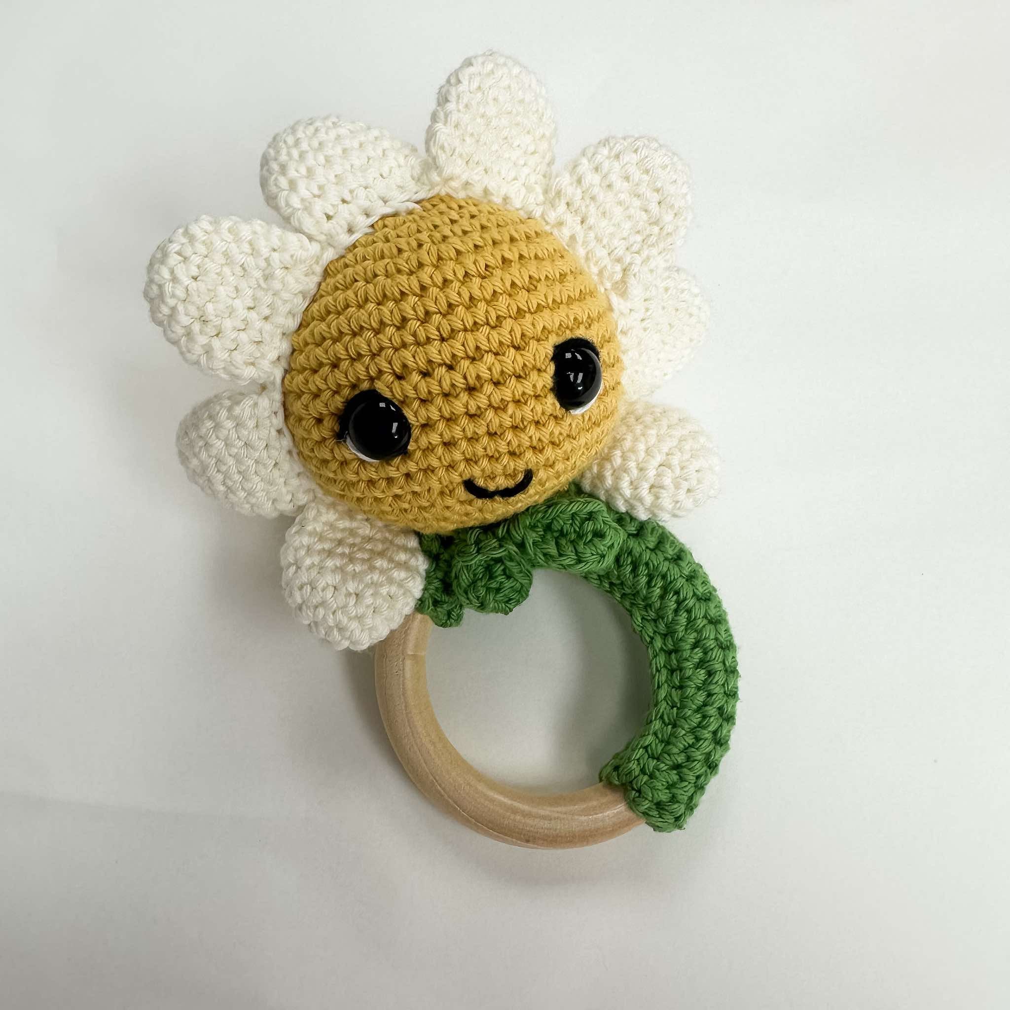 Introducing the adorable crochet daisy rattle, the perfect companion for your little ones!