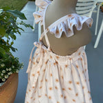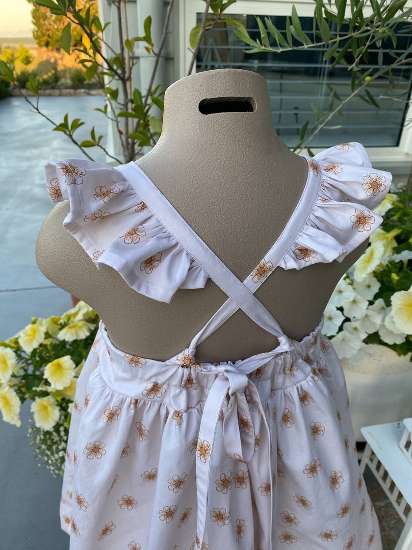 Elastic at the back for easy fit and straps that tie in a lovely bow adding a beautiful feature to the back of this dress.