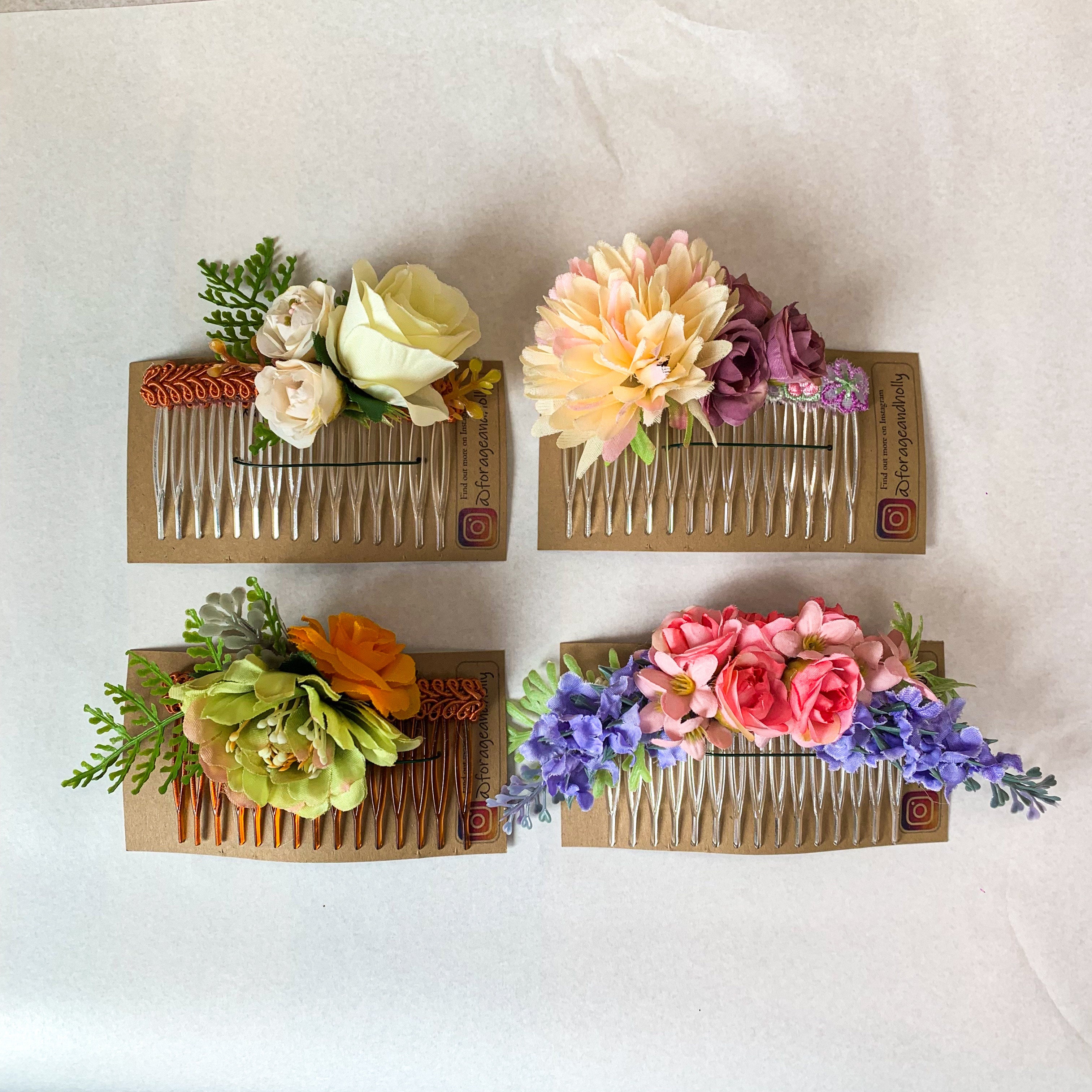 Brighten up any hairstyle with our gorgeous Floral Combs, adorned with exquisitely crafted artificial flowers. Perfect for pretend play, as a charming accessory for flower girls, or just for fun, these combs effortlessly tuck into buns or hold hair back, adding a delightful touch of whimsy and elegance to your look.
