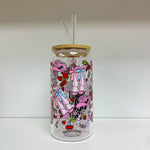 Introducing our delightful glass tumbler with lid and straw - the perfect blend of style and functionality! Designed with fun and vibrant patterns, each tumbler adds a splash of personality to your sips on the go.