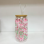 Introducing our delightful glass tumbler with lid and straw - the perfect blend of style and functionality! Designed with fun and vibrant patterns, each tumbler adds a splash of personality to your sips on the go.