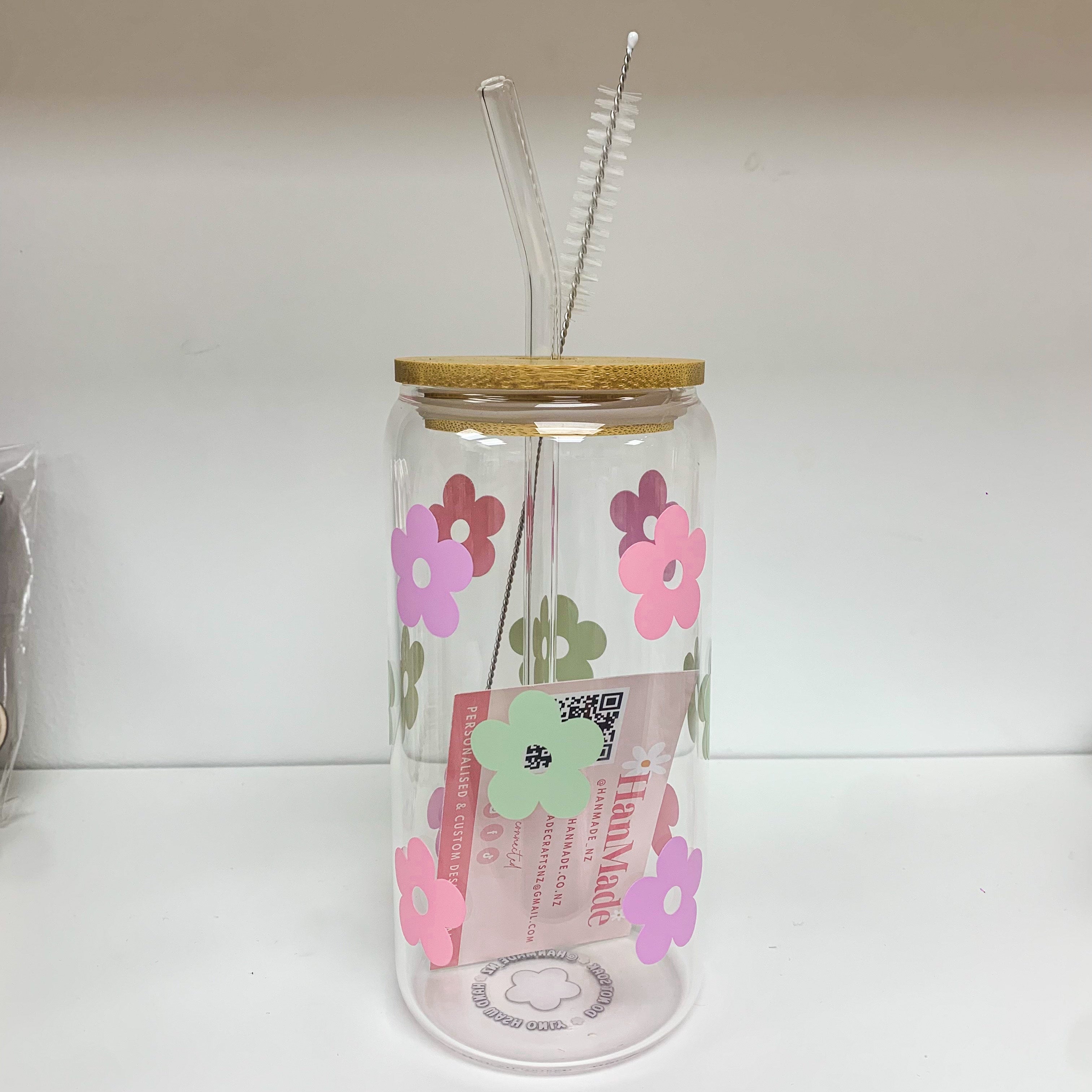 Glass Tumbler with Straw - Daisy Mint/Pink + Lavender