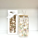 Glass Tumbler with Straw - Geese & Daisies