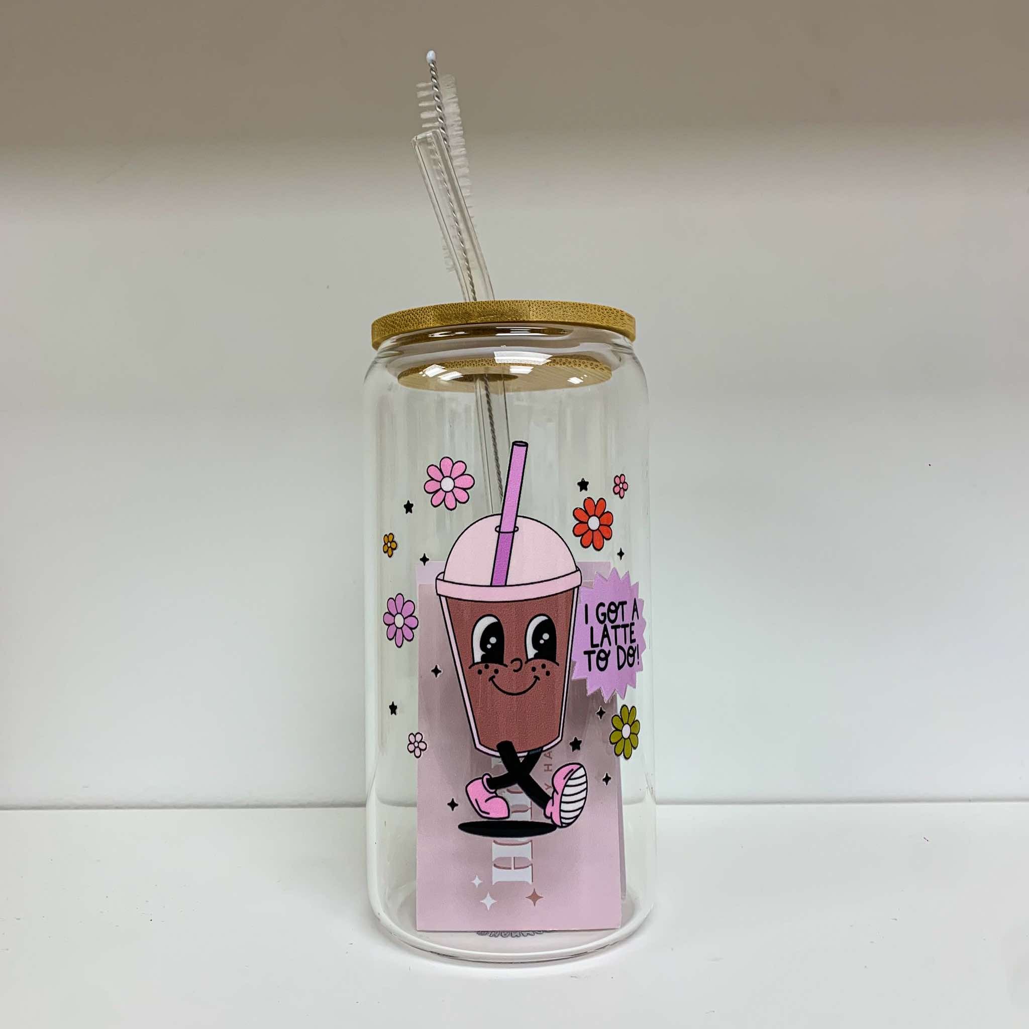 Crafted with durable glass and featuring a convenient lid and straw, it's your go-to companion for staying hydrated wherever you wander. Plus, we've included a handy straw cleaner, ensuring your sipping experience stays fresh and clean every time.