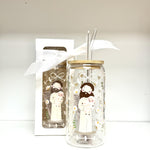 Glass Tumbler with Straw - Jesus Holding Lost Sheep