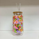 Introducing our delightful glass tumbler with lid and straw - the perfect blend of style and functionality! Designed with fun and vibrant patterns, each tumbler adds a splash of personality to your sips on the go.