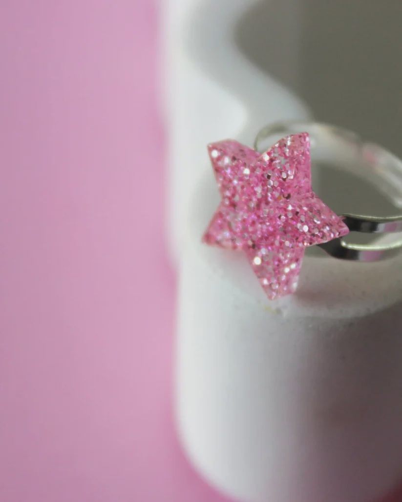 Add a sparkle to their style with this glittery star ring made for little fashion lovers!