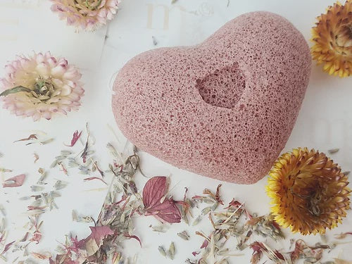 A HEART shaped Konjac sponge that is all natural, vegan and made from the root of the konjac plant.