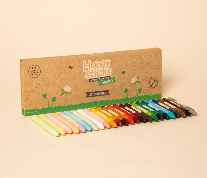 - Jumbo size for a developed grasp: Honeysticks Jumbo crayons are designed for little artists with a more developed pencil grip, making them perfect for finer art colouring and projects. Each crayon is 9.9cm long and 1.19cm thick.