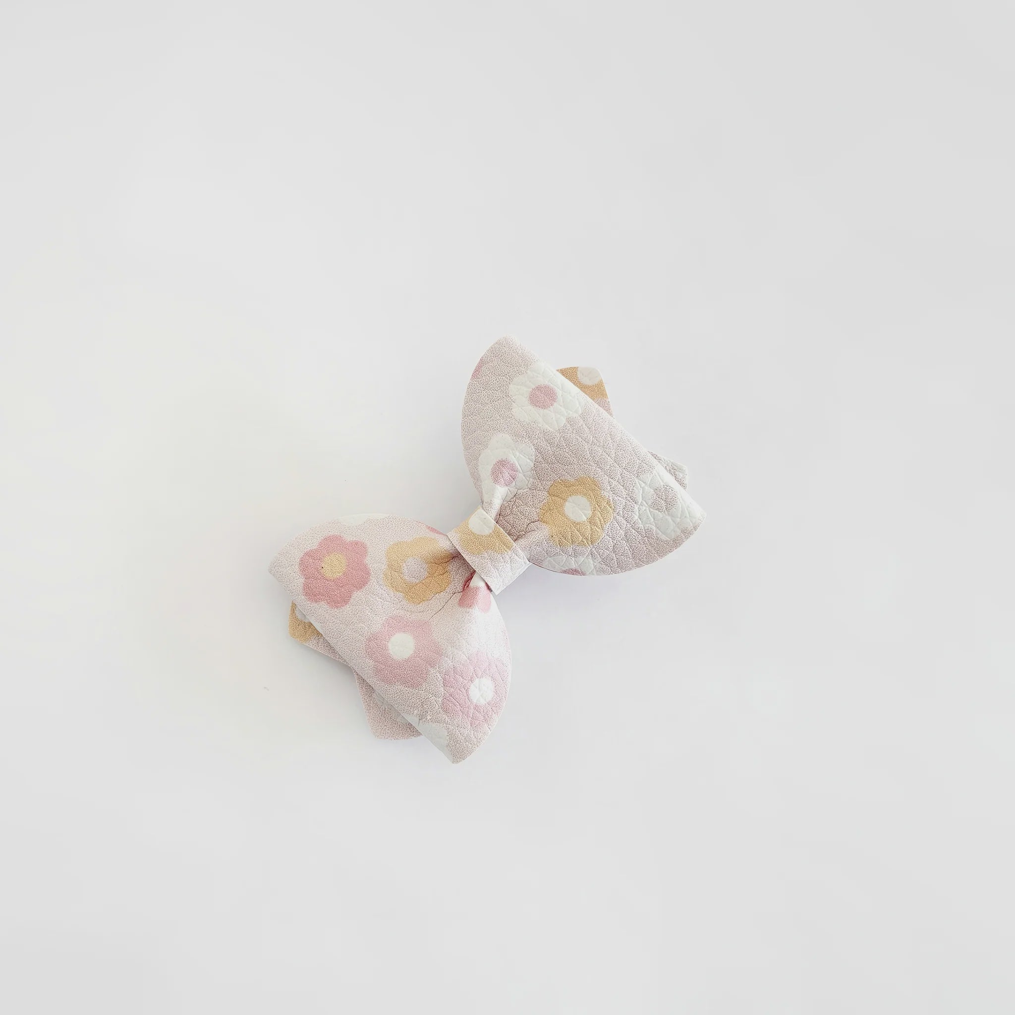 A vegan leather with a fun & happy floral print is used to craft these bows, which come set on 3.5cm ribbon wrapped alligator clips, or handstitched onto our comfy, non-marking headbands.