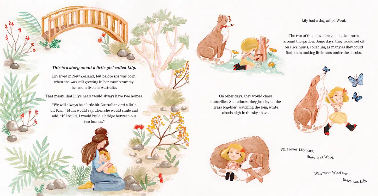 When Lily's Mum tells her that she wishes she could build a bridge between their two homes, Lily and her dog, Woof, swap stick hunts for bridge hunts and set off in search of a bridge to Australia. This is a charming and whimsical tale of a little girl, her furry best friend and a big imagination. Kiwis and Koalas is a beautifully illustrated story that will take you on a magical journey around Australia and New Zealand, stopping to sightsee along the way.