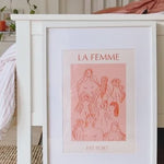 My best-selling design. Starting out as a pencil sketch, the la femme print became its own iconic design seen on walls in France, Sweden, Australia and America. ‘The woman is strong’ is the classic hot coral text framing the array of female forms.
