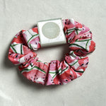 Our scrunchies are medium sized are made with 5ml elastic and wrap tightly around your hair aprox 3 times.