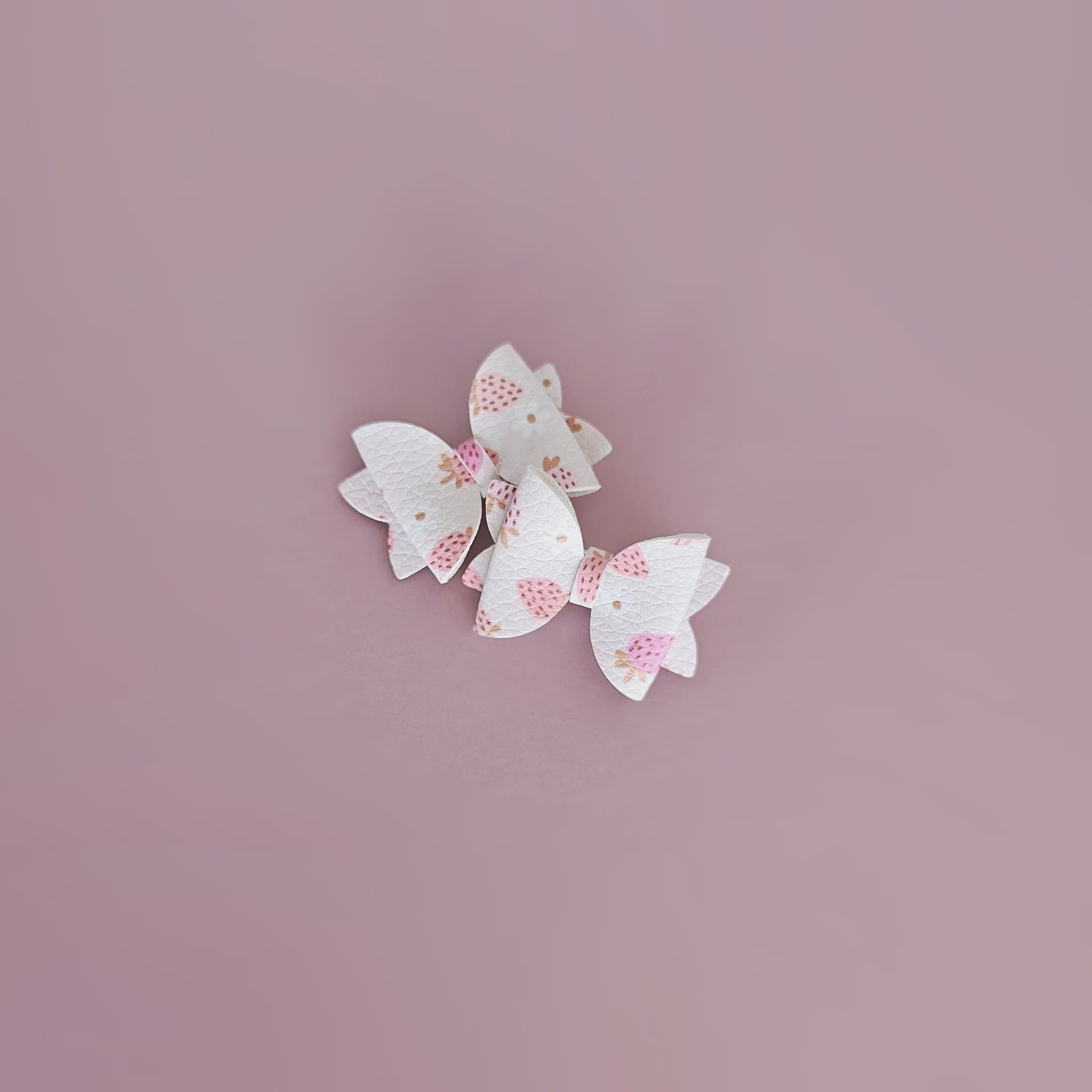 These sweet, strawberry print, pale pink pigtail bow pairs measure 3.8cm x 2.7cm. They are made of a wipe-clean PU coated fabric with a knitted reverse and come set on 3cm grosgrain-wrapped alligator clips, ideal for your mini's hairdos, or at the end of braids. They're also available on a OSFM soft and stretchy nylon-spandex headband. These are incredibly comfy and will fit tiny babies, kids or adults without leaving red marks or dents.