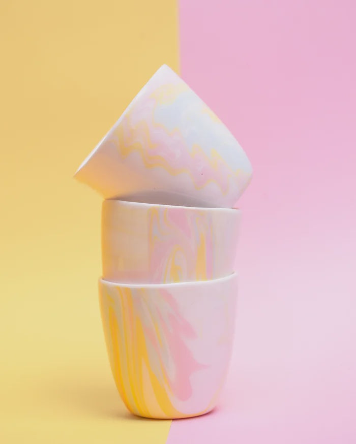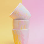 Everything is made in my home studio in Taranaki, New Zealand. I use a technique called slip casting which I am self taught in. I use liquid porcelain that I colour with ceramic stains and pour into moulds I have made. My work gets fired up to three times in my electric kiln before it is completed.