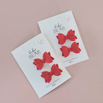 They're set on 3cm grosgrain-wrapped alligator clips, ideal for tiny pigtails, mini hairdos, or at the end of braids. This gorgeous fabric is also available in single, middle-sister sized and single big-sister sized pinch bows.