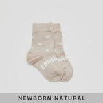 NEWBORN NATURAL - Ted - Oatmeal with natural crosses crew length merino socks
