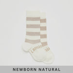 NEWBORN NATURAL - Dandelion - Natural with oatmeal stripes knee high baby merino socks