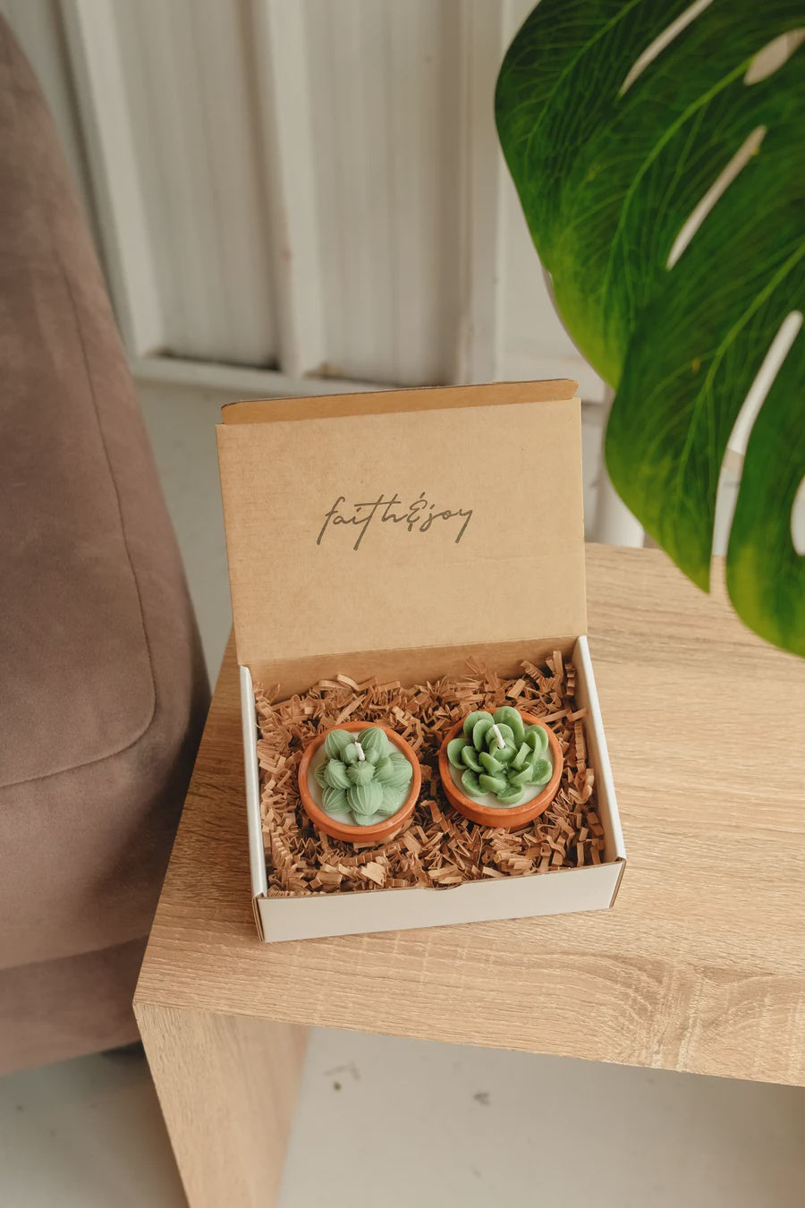 This beautiful candle is housed in a terracotta pot, featuring an intricate design inspired by the beauty of succulents. The candle itself is made from high-quality soy wax and boasts a long-lasting, clean burn. The soothing scent will fill your space with a delicate fragrance, reminiscent of a blooming desert garden.