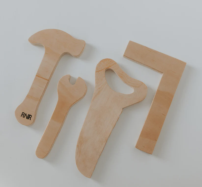 Does your child love to help? Start them creating young. Coloured wooden tool set-including a hammer, ruler, screwdriver, saw and crescent. These are painted with a nontoxic paint and sealed with organic tung Oil. These tools are of sturdy construction and made for serious play-perfect for your little helper at home.
