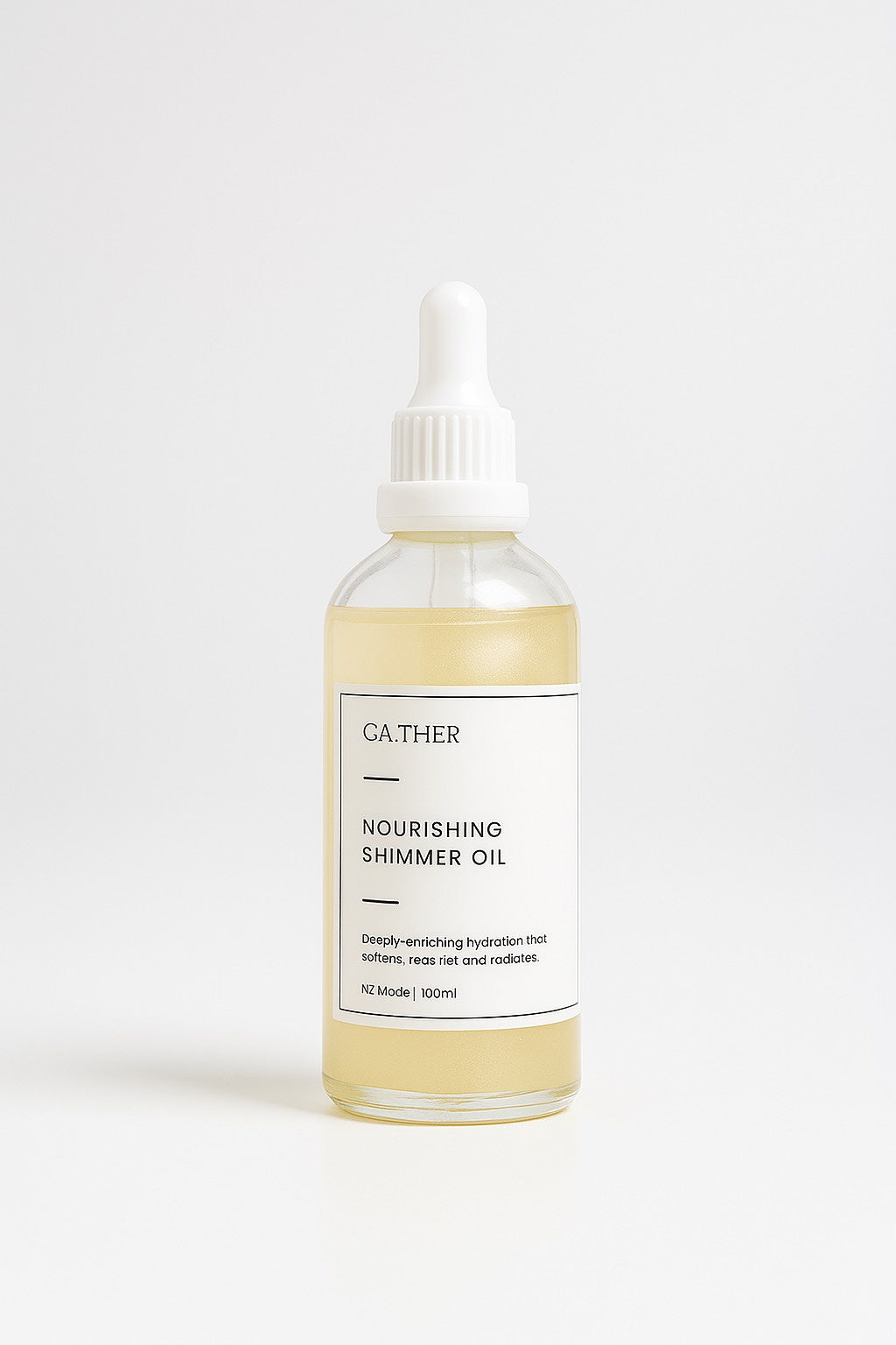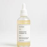 Illuminate your skin with GA.THER Nourishing Shimmer Oil, a lightweight, golden blend that hydrates deeply while leaving a radiant, sunlit glow. Enriched with sweet almond oil, kawakawa extract, and vitamin E, this formula nourishes and restores the skin’s natural softness. Infused with delicate mica minerals, it enhances your skin with a subtle shimmer, perfect for both everyday wear and special occasions.