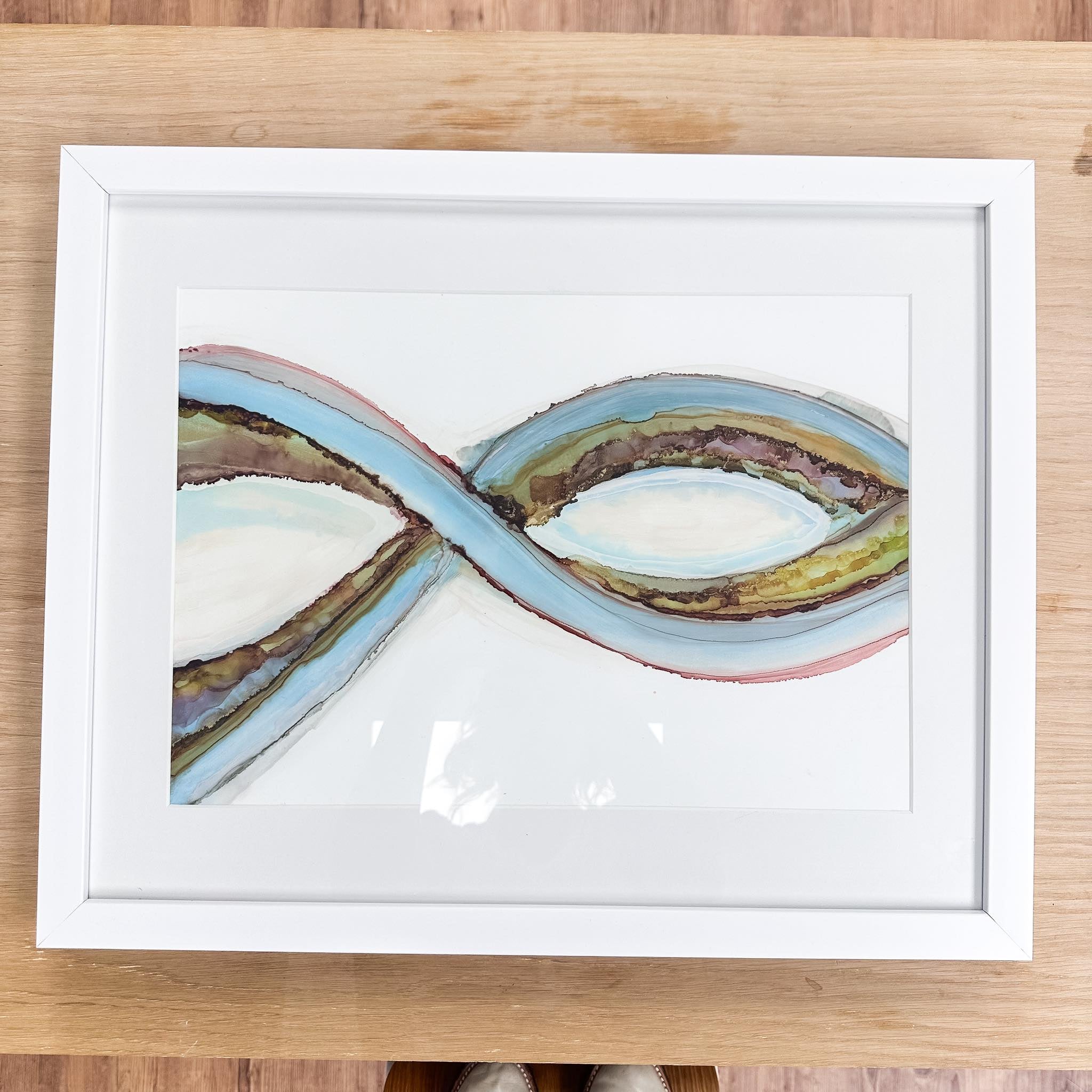 Original Alcohol Ink Artwork - Frozen Twin Rivers - Framed