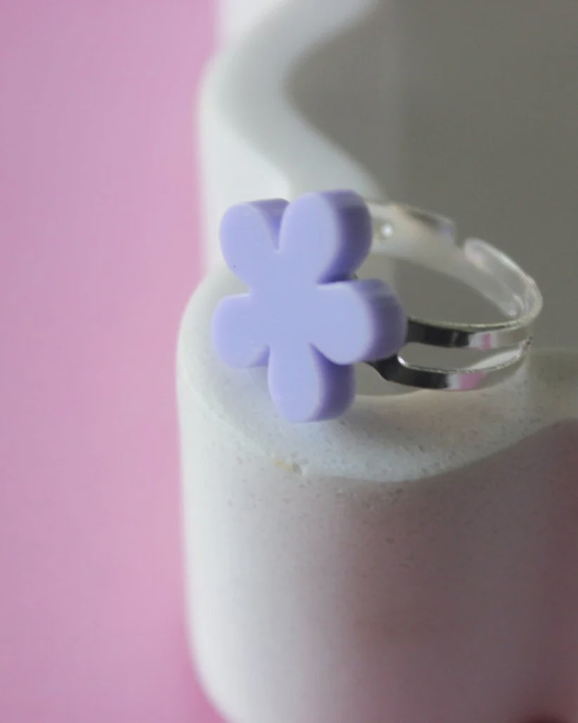 Bring a little flower power to tiny hands with this dreamy periwinkle statement ring.