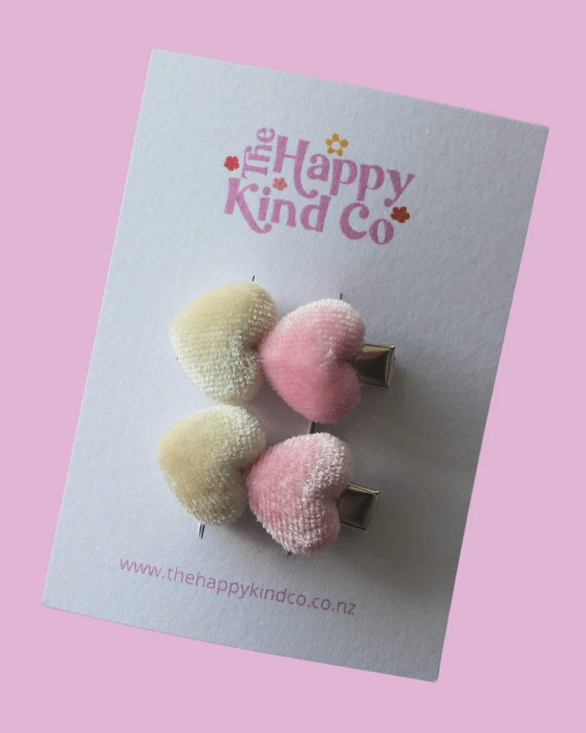 Adorned with luscious mini velvet hearts, these creamy white pretties are the perfect accessory to add a touch of elegance and sweetness to a simple hairstyle.