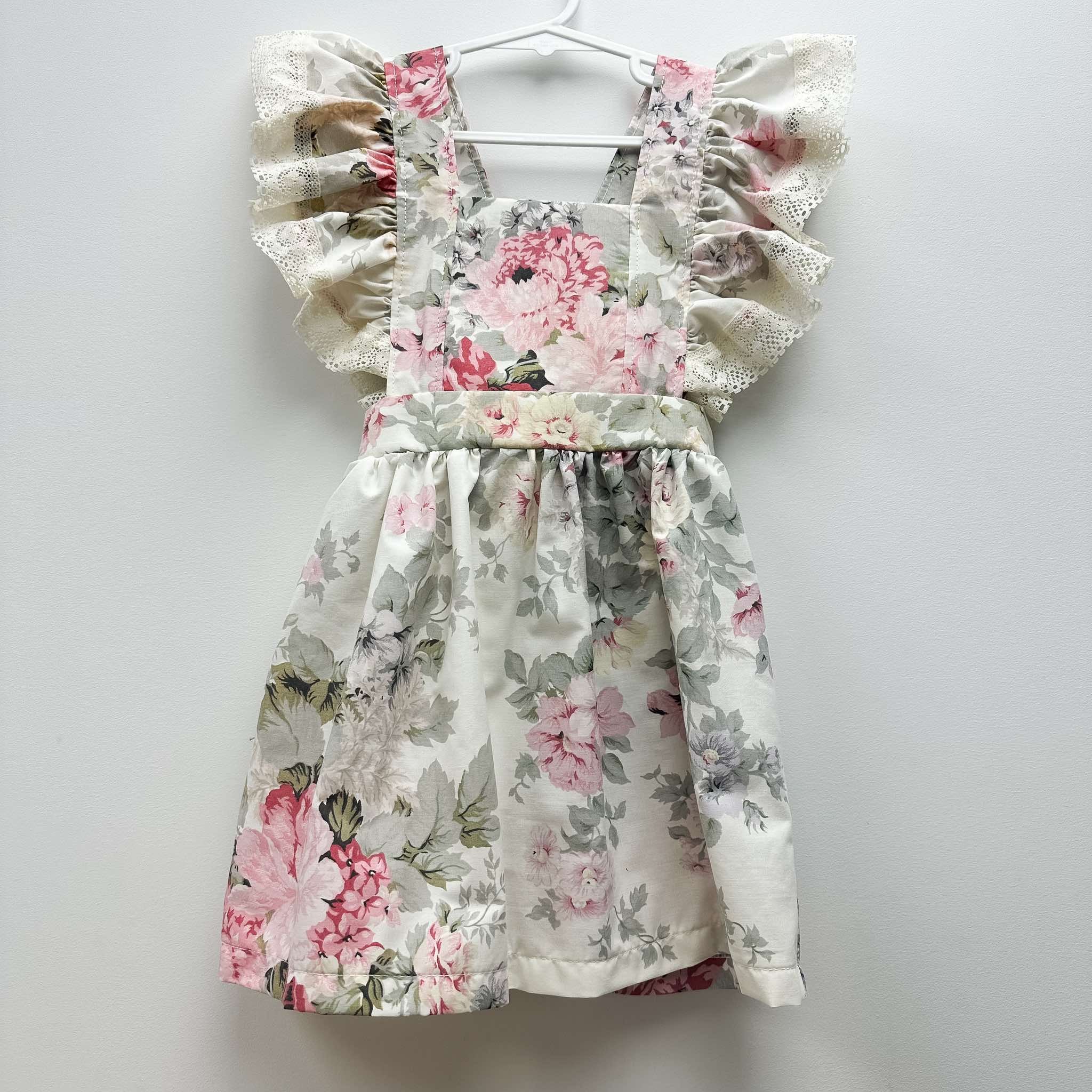 Introducing our charming new pinafore, beautifully crafted in New Zealand. This delightful piece features stylish crossover back straps adorned with delicate lace, adding a touch of elegance to your everyday look. The relaxed fit and playful silhouette make it perfect for layering over your favorite tops or dresses.