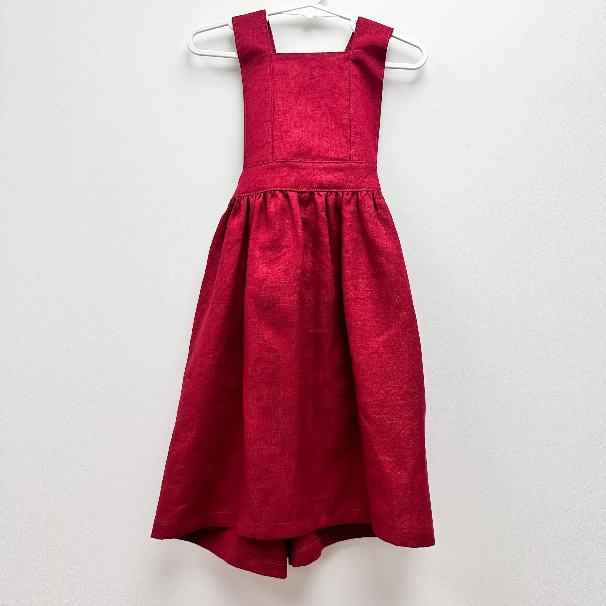 A cute pinafore in 100% linen. The elasticated waist leaves room for growth and there are two buttonhole placements on the straps as well. The pockets are perfect for storing treasures. All French seams and linen washes and wears to a beautiful softness.