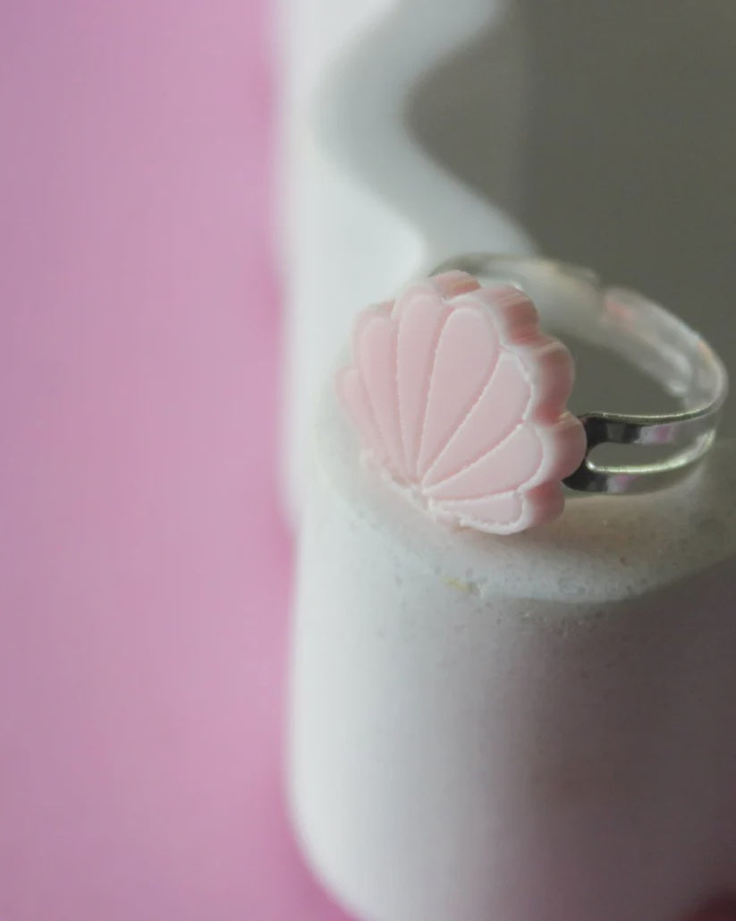 This playful adjustable metal ring features a sweet pink shell embellishment (12mm) designed and cut by our talented local friend Kelly. Set on a sturdy 1.5cm adjustable band, it’s made just for minis with a fit that works across a range of finger sizes.