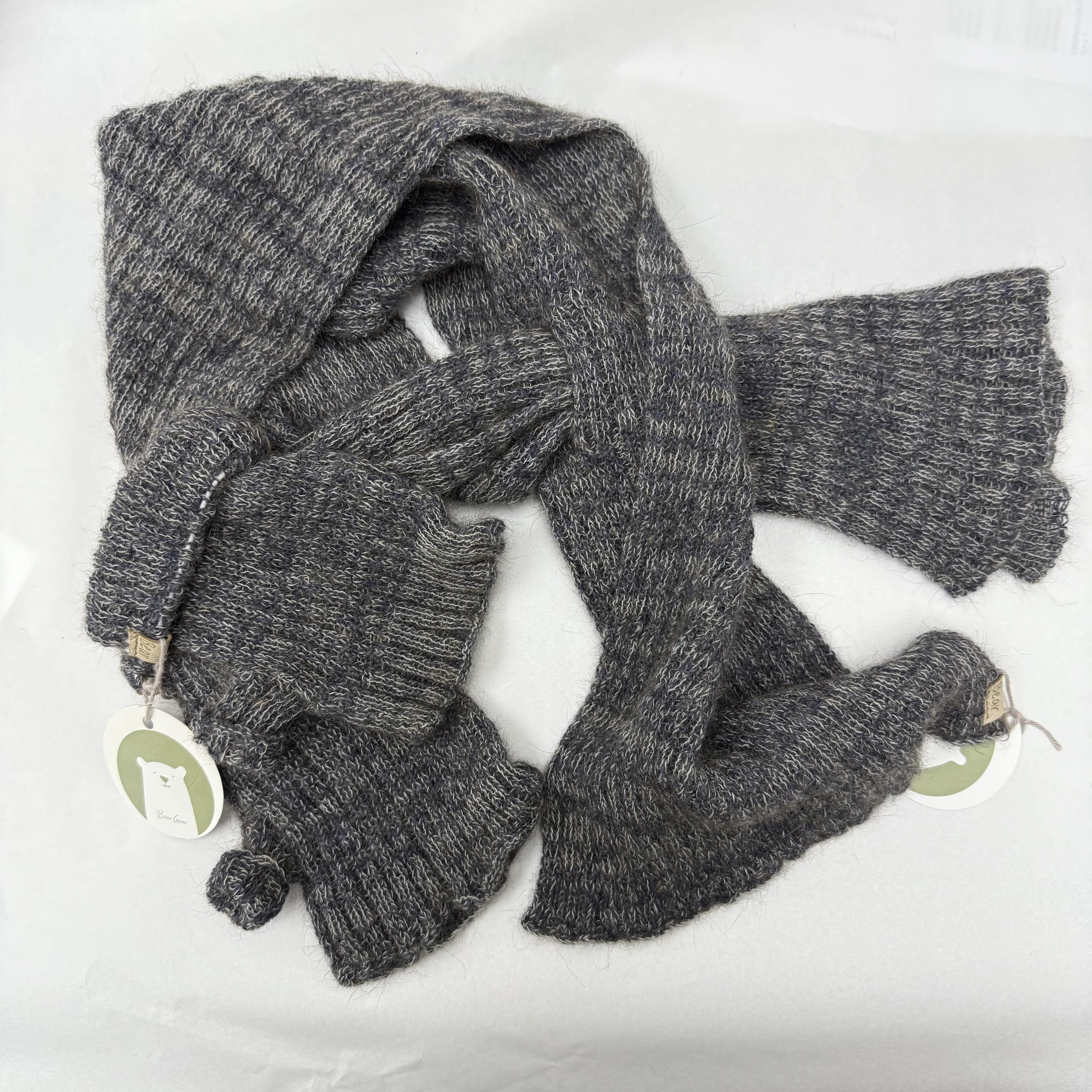 Possum/Merino/Silk Keyhole Scarf with Matching Fingerless Mitts - Natural/Indigo