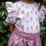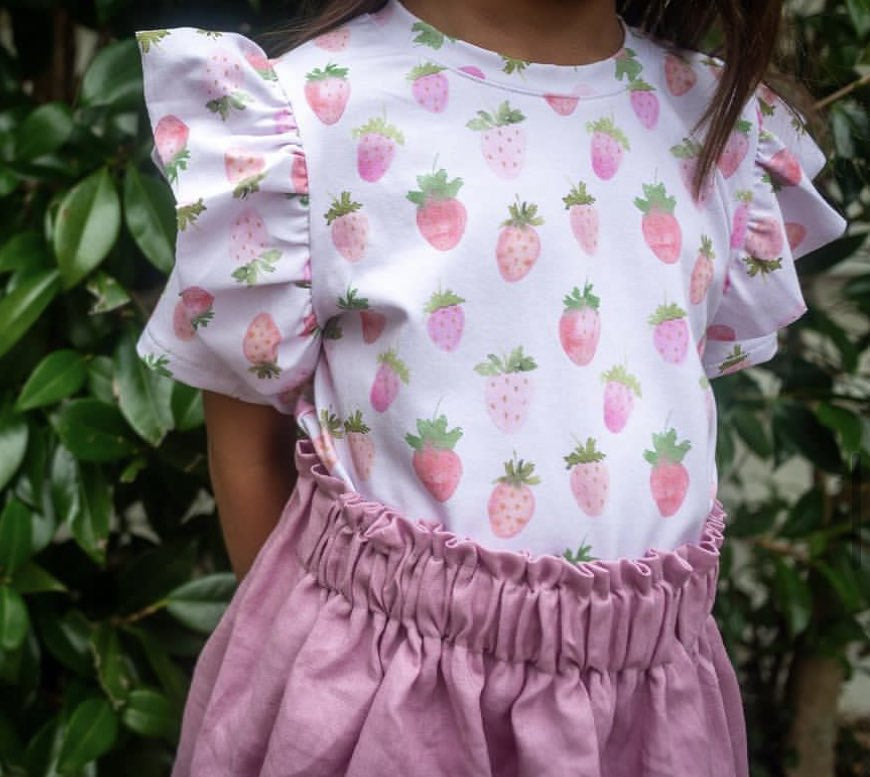 Our Rose Tee features a crew neckline with a flutter set into the shoulder. Made from lovely soft organic cotton spandex blends with plenty of stretch to allow for play. All of the prints available are designed by New Zealand watercolour artist, Ashleigh Fish and custom printed for my designs. These prints are very exclusive and unique to Little Magnolia.