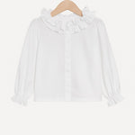 Inspired by classic vintage designs, this beautifully crafted blouse brings an old-world charm to your child’s wardrobe. Featuring softly gathered sleeves, delicate puffed shoulders, a sweet gathered collar, and dainty buttons down the front, it’s perfect for everyday wear or special occasions alike.