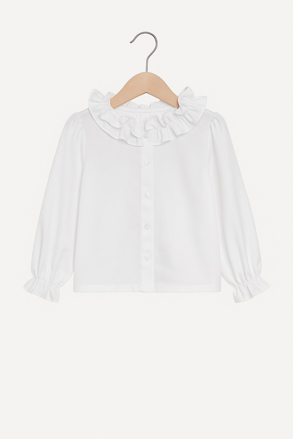 Made with comfort and style in mind, this blouse pairs effortlessly with overalls, skirts, or bloomers — a timeless piece for little wardrobes with big personality.