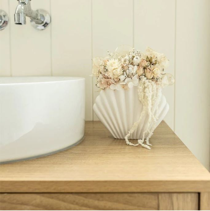 Shell vase is the perfect way to add some seaside style to your home decor. Place dried flowers in this shell vase for a contemporary look that pairs well with bookshelves and mantels alike.