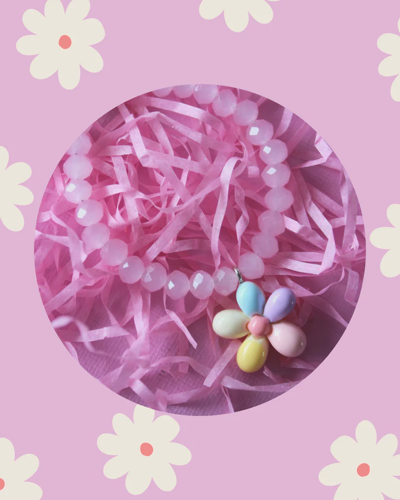 Shimmering Rainbow Flower Bracelet - Rose Quartz