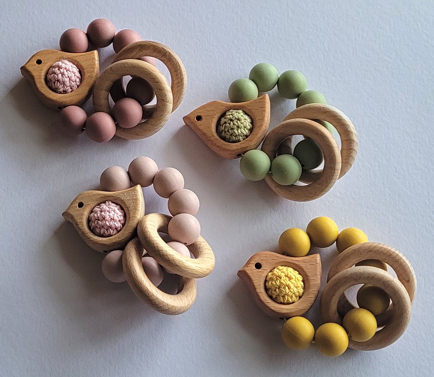 Our rattles/teething rings are made from 100% food grade silicone, BPA, phthalate, PVC, and latex free