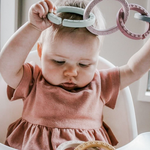 These gorgeous links help your little me develop fine motor skills, help sooth teething gums and can link onto your pram or other play accessories. Made from premium food grade silicone, free from any nasty chemicals.